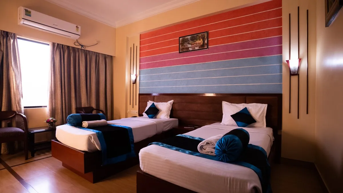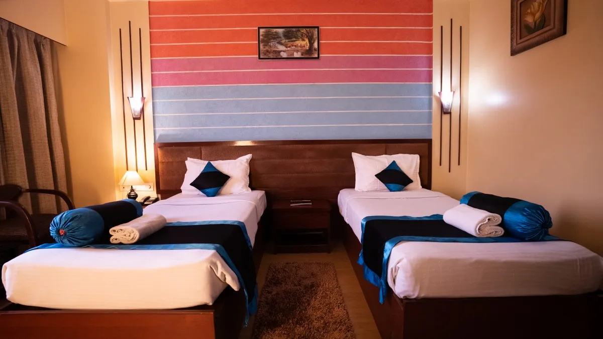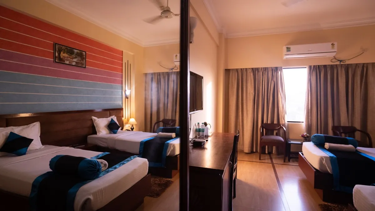 Indulge in unparalleled comfort and elegance at the Corporate rooms of Hotel Nakshatra. Spread spaciously across 280 square feet, these beautifully appointed havens boast opulent settings and stunning color palettes. Unwind in a luxurious bathroom featuring a bathtub and a complete range of toiletries, ensuring a truly unforgettable stay. Perfect for 2-3 guests, the Corporate DLX rooms offer the ideal blend of style, comfort, and functionality, all complemented by free Wi-Fi, a delectable breakfast, and complimentary services to make your stay truly exceptional.